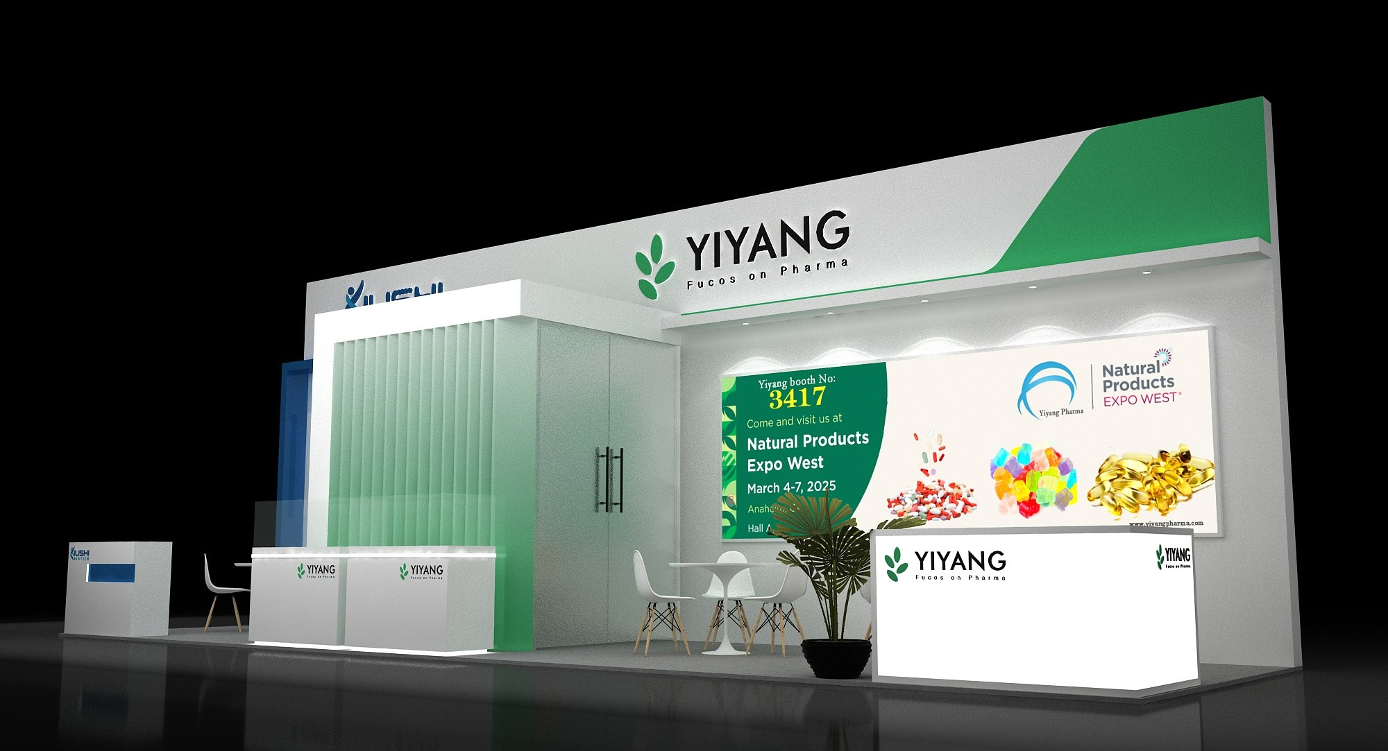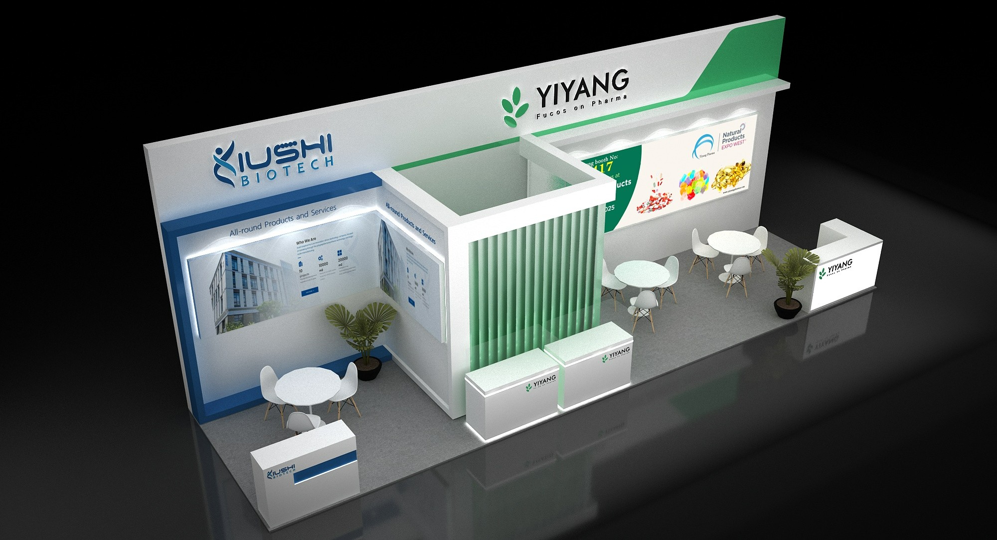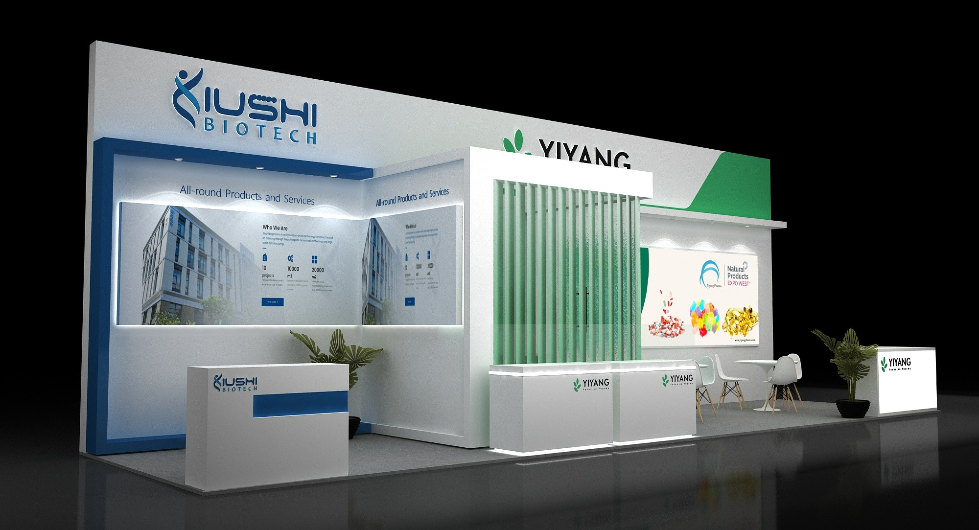 展位面積:3*11=33平方米 分開做兩家藥企做展臺設計 3*3和3*8